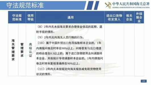 在具体标准内容上,按照“形成海关统一的企业信用管理制度”的原则,结合企业管理关检业务融合实际需要,新认证标准中纳入了检验检疫标准,主要是在单证控制、单证保管、企业守法、管理要求等项中增加了检验检疫要求,同时新增了质量管理等单独项。